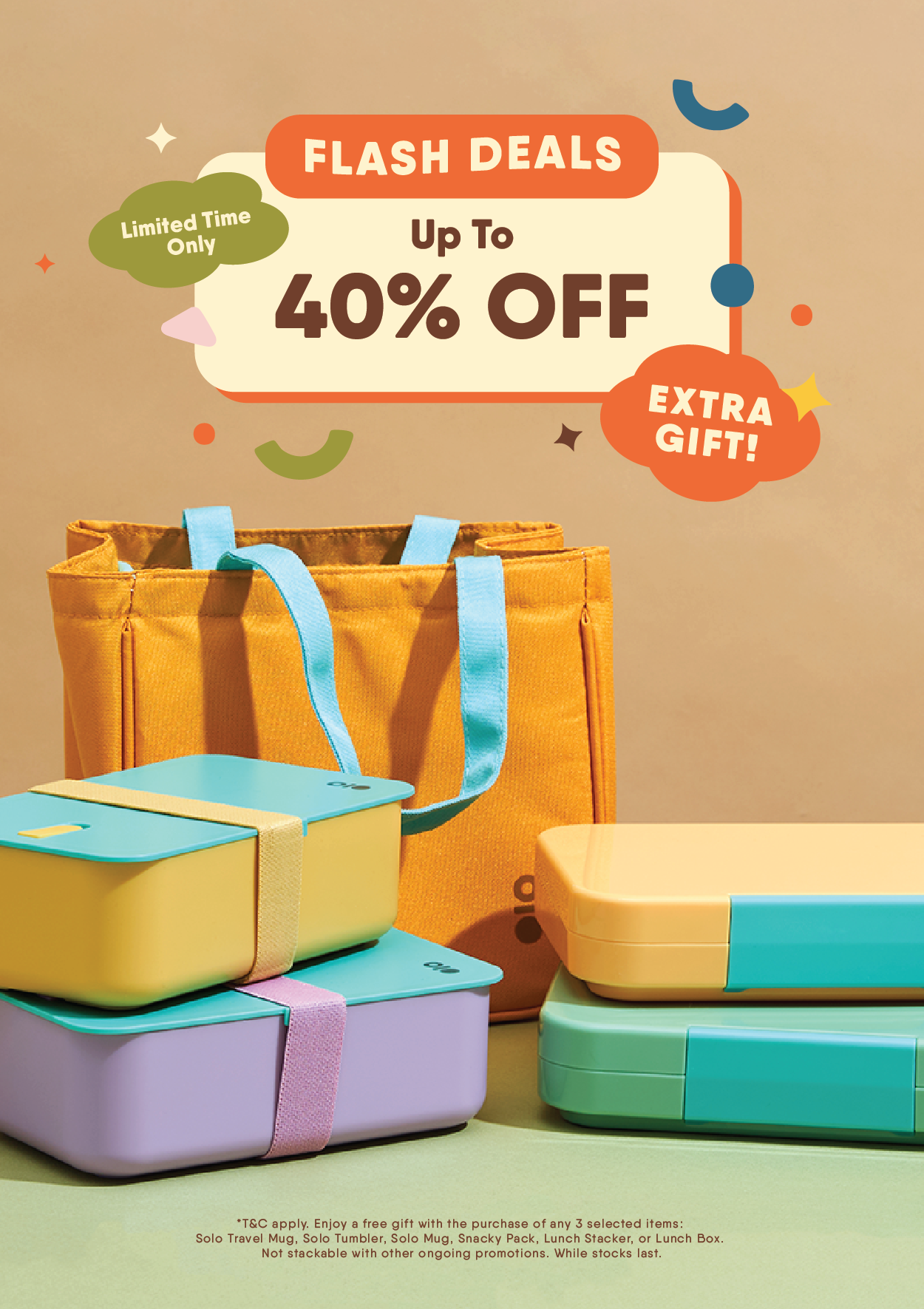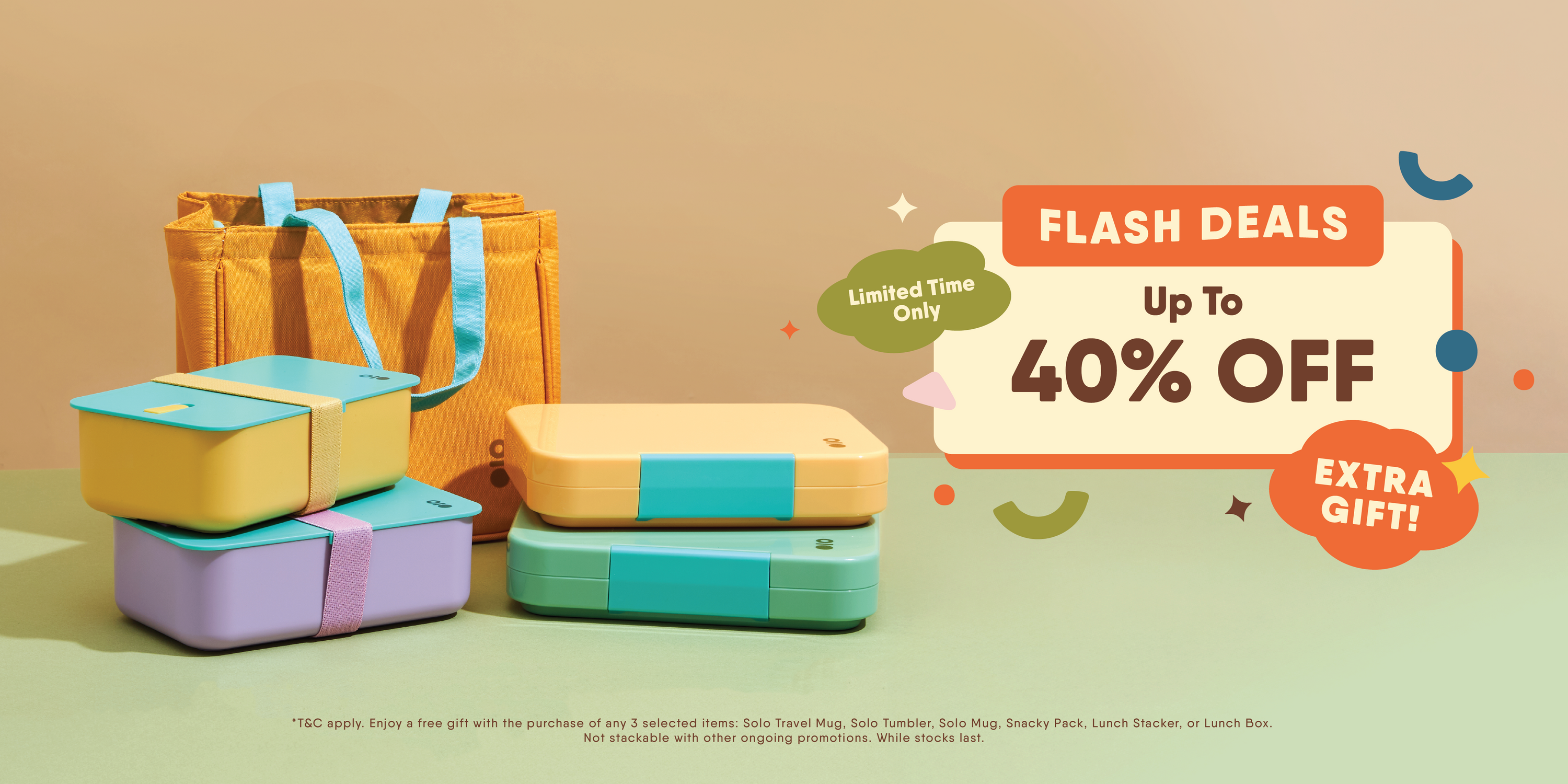 Enjoy a Free Lunch Bag (selected colour only) with the purchase of any 3 selected colours / items: Solo Travel Mug, Solo Tumbler, Solo Mug, Snacky Pack, Lunch Stacker, or Lunch Box.