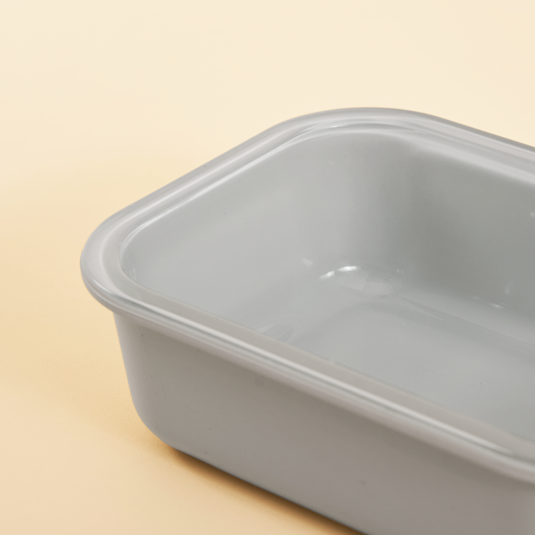 A sleek rectangular glass container designed to keep your meals fresh. Crafted from high borosilicate glass with a smooth, non-stick coating, it withstands extreme temperatures while preserving every bite.