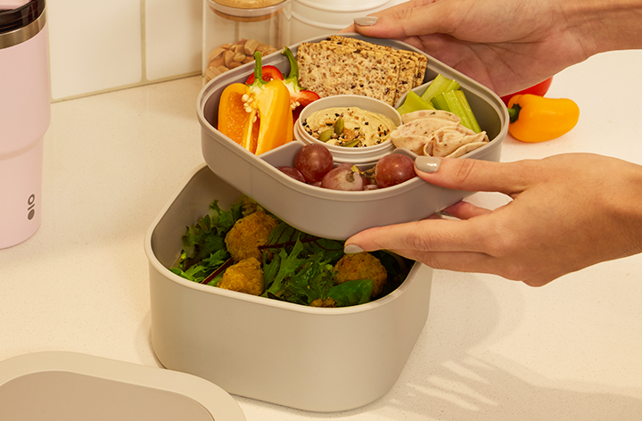 Our Lunch Stacker with multiple compartments separates fresh meal portions. Ideal for your mobile lifestyle.