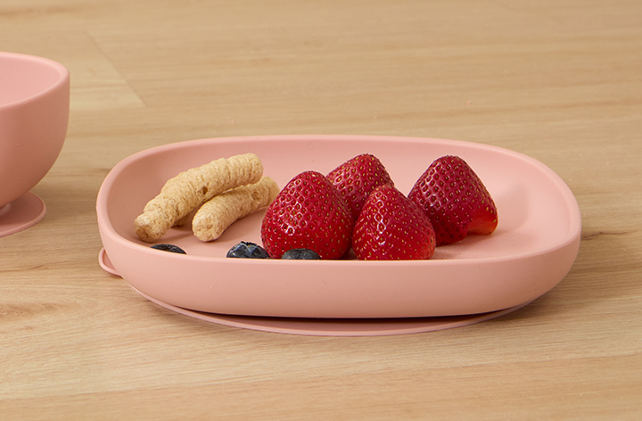 Our silicone plate makes mealtime training easier - on both baby and parent! Its wide surface and curved edges emulates a plate while being able to contain spillovers. It is safe for food, safe with heat, and it comes with a suction grip pad at the bottom, so the plate stays where it should!